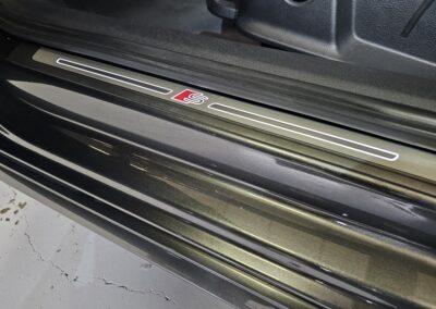 Este vehículo destaca por su completo equipamiento, incluyendo climatizador trizona, sensores de aparcamiento delanteros y traseros, y un sistema de navegación con pantalla táctil de 10,1 pulgadas. El interior presenta detalles deportivos S line con asientos específicos y volante multifunción revestido en cuero.